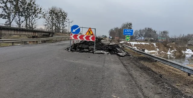 У районі 13:00 під час проведення ремонту дорожнього покриття стався обвал однієї смуги руху мосту. При цьому здійснювати рух по мосту можна смугою, що збереглася.