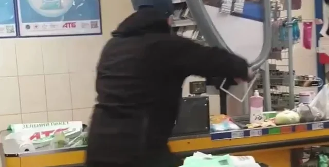 Він пошкодив полиці з продуктами харчування, розбив касовий апарат і кричав на працівників магазину.