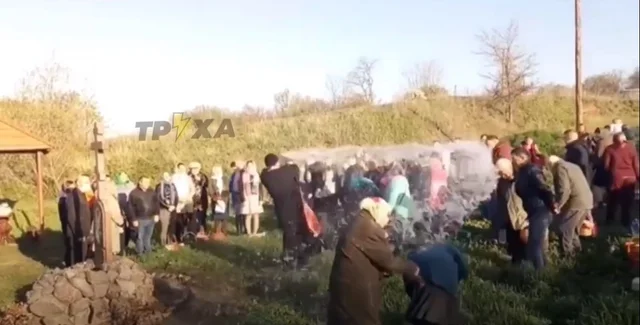 У селах Шийківка і Ізюмське Харківської області священик поливав прихожан водою прямо з відра. Про це повідомляє Telegram-канал "Труха Харків".