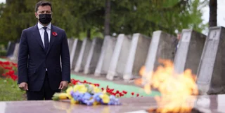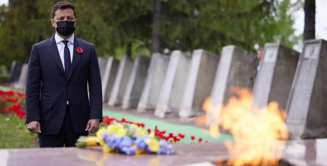 У День памʼяті і примирення президент України Володимир Зеленський разом з послами "Великої сімки" відвідав Меморіальний комплекс "Україна — визволителям" в смт Мілове Луганської області і відкрив там "Дзвін памʼяті".