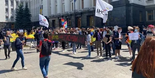 Під Офісом президента протестуючі висунули ряд вимог. Також повідомляється про одного затриманого.