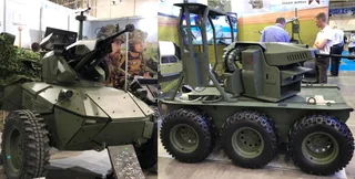 На виставці "Зброя та безпека-2021" українські підприємства Roboneers, Robotics та Infocom представили свої варіанти наземних бойових дронів. Про це повідомляє Liga.net із виставки.