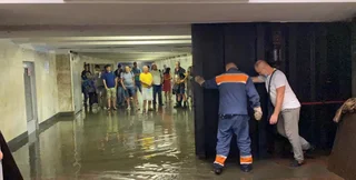 Керівництво київського метрополітену закрило гермозатвор у переході до станцій метро, щоб вода не потрапила на шляхи.