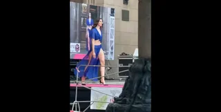 За її дефіле біля будівлі міськради спостерігав цілий натовп людей. Хода дівчини транслювалося і на екрані, який висів поруч зі входом в мерію.