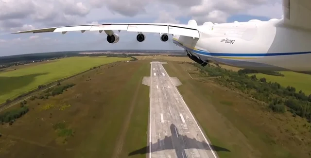 Також на кадрах можна побачити, як Ан-225 "сів на хвіст" літака, що летить попереду, а в кінці ролика показаний його захід на посадку в аеропорт Гостомель.