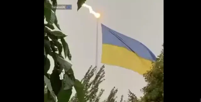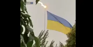 На відео видно, як у верхівку флагштока потрапляє блискавка, після чого лунає гучний хлопок. Після цього оператор, який знімав відео, опустив камеру, а саме відео обривається.