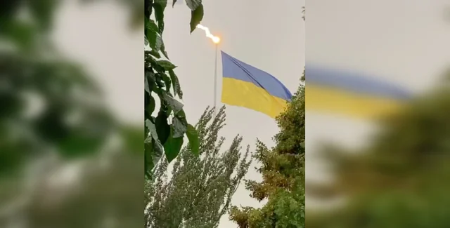 "Ну, це небажано, звісно, точно так само, як і перебувати біля будь-якої високої конструкції. Наприклад, стояти біля Ейфелевої вежі, у яку як мінімум чотири рази на рік б'є блискавка, теж не варто, як і не варто на неї спиратися. Це, власне, правило безпеки, яке вивчається в школі усіма — ховатися під високими спорудами від грози, будь-то дерева чи флагшток, під якимись щоглами — це небезпечно. Так робити не можна", — заявив експерт.