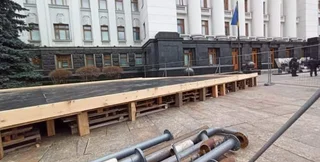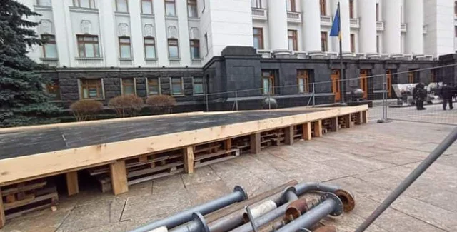 У Києві біля Офісу президента України на Банковій почали облаштовувати майданчик для льодової ковзанки. Для цього на периметрі площі Офісу комунальники встановили металеві огорожі. Про це стало відомо з публікації у Facebook журналістки Крістіни Зеленюк.