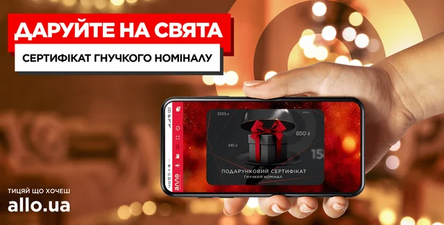 Національний маркетплейс АЛЛО ввів у продаж подарункові сертифікати, не обмежені фіксованою сумою. Тепер можна оформити електронний сертифікат на будь-яку точну суму в діапазоні від 100 до 49 999 гривень. Такий сертифікат стане влучним подарунком до новорічних та інших свят.
