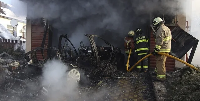Tesla разом з гаражем, в якому також знаходилися два мотоцикли, згоріли вщент. Загальна площа загоряння – 70 кв. метрів.