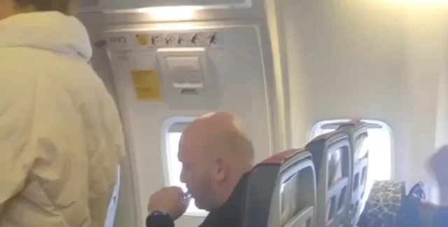 Зняте відео інциденту виклали в соцмережах, на ньому можна бачити, як чоловік палить у салоні через систему нагрівання тютюну, незважаючи на те, що це заборонено правилами.