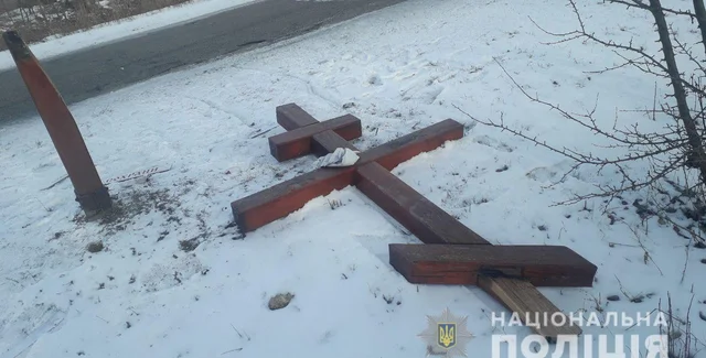 У Київській області 2 лютого двоє молодих людей у стані алкогольного сп'яніння зламали пам'ятний хрест, який було встановлено між селами Плоске та Гоголів, повідомляє пресслужба Нацполіції в Київській області.