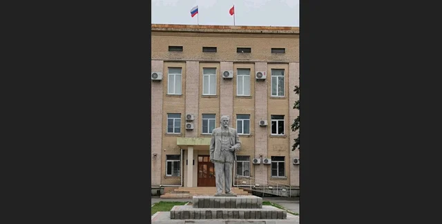 На опублікованому під повідомленням фото також видно прапори РФ і СРСР, встановлені над будівлею адміністрації.