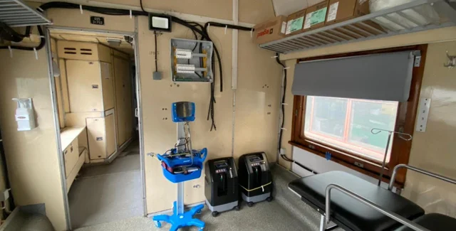 У складі потяга також є спеціальний вагон інтенсивної терапії.