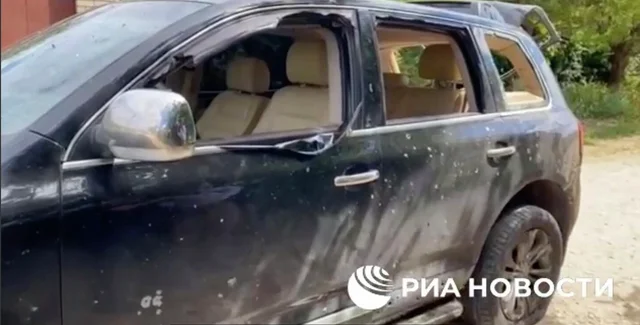 Також журналісти розповсюдили відео, на якому знято автомобіль із пошкодженнями, отриманими під час вибуху.