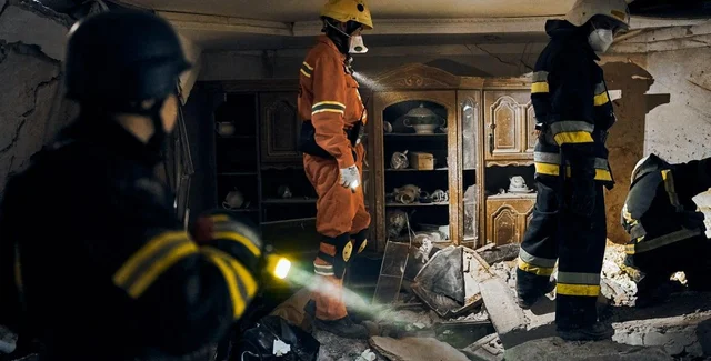 Рятувальники у зруйнованому будинку Олексія Вадатурського | Фото: ДСНС