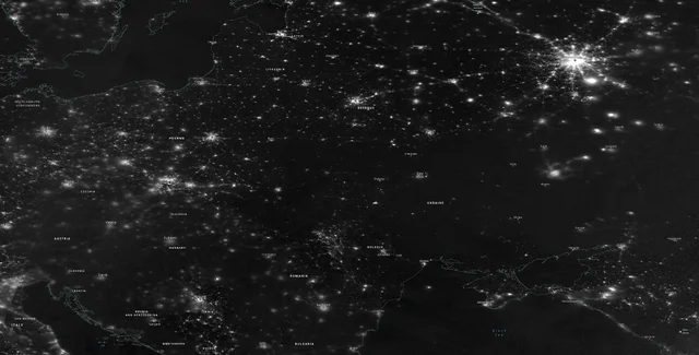 Супутникові знімки показують, як країна поринула у пітьму. Київ і більшість областей залишилися без електроенергії та водопостачання.