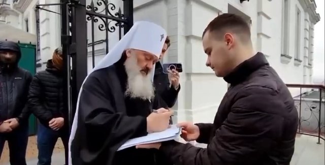 У ролику видно, як Павло підписує документи біля входу до Києво-Печерської Лаври. За даними ЗМІ, СБУ підозрює митрополита УПЦ (МП) у розпалюванні міжрелігійної ворожнечі (ст. 161 ККУ) та виправданні збройної агресії з боку Росії (ст. 436 ККУ).