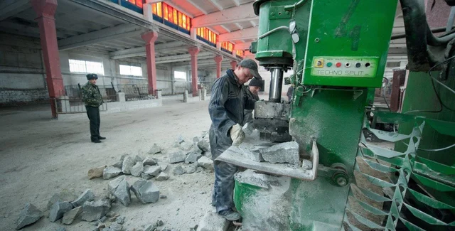 Ув'язнені працюють у цеху з виробництва бруківки у Кам'янській виправній колонії №101 | Фото: УНІАН