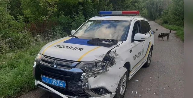 Поліцейські встановлювали обставини адміністративного правопорушення, вчиненого п'яним 17-річним мотоциклістом, коли їхню машину протаранив інший нетверезий водій автомобіля.