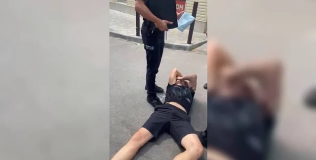 Після ще кількасекундної словесної перепалки співробітник поліції наступив на ноги чоловікові, після чого сказав, що це було випадково. Момент зафіксувала камера.