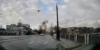 Практично одразу ж перекрили вулицю Полтавський шлях у західній частині міста. Там стояв регулювальник і показував водіям напрямок, за яким вони могли б проїхати. За його спиною було видно пожежу.