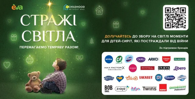 З 14 грудня 2023 по 15 січня 2024 р. купуйте в EVA або на EVA.UA товари брендів-партнерів ініціативи "Стражі світла". Частина коштів від продажу буде перерахована на користь підопічних проєкту "Дитинство без війни".