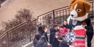 20 грудня столичні Telegram-канали почали поширювати кадри, на яких група молодих людей стоїть разом із червоним прапором, на якому присутня нацистська символіка. Поруч із ними стоїть ростова фігура пса Патрона, який після початку вторгнення здобув свою популярність завдяки допомозі саперам у розмінуванні територій.
