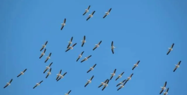 До "Тузлівських лиманів" прилетіли перші великі зграї рожевих пеліканів (фото)