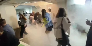 Наразі фахівці з'ясовують, за яких саме обставин вогнегасник упав на землю і завдав шкоди щонайменше чотирьом неповнолітнім студенткам.