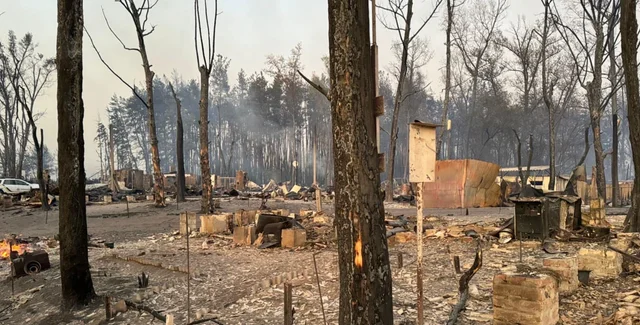 У Харківській області через лісову пожежу повністю згоріло село Піски-Радьківські. Про це повідомив керівник слідчого управління в області Сергій Болвінов у своєму Facebook.