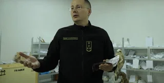 На відео показали інші історичні знахідки, — артефакти, які контрабандисти намагались вивезти з України і які зараз зберігаються у спеціальних сховищах. Серед них — старовинні козацькі шаблі. На відео показали шаблю, вкриту чорною речовиною (мазутним шаром, смолою) та готовою для перевезення. Крім того, є скарби монет, які могли б зацікавити "піратів Карибського моря", пожартував спікер. Зловмисники намагались вивезти кераміку часів Трипільської культури: горщик зберіг форму, а червона фарба майже така ж яскрава, як колись. Також у сховищі є артефакт віком 250 млн років: його не показали, оскільки він надто цінний. Ще один напрямок контрабанди — замовлені в українських ювелірів вироби з нацистською символікою: на відео показали два жезли, оздоблені золотом, сріблом та з елементами свастики.