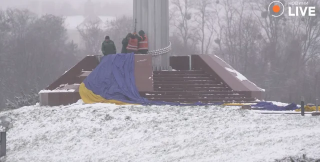 "Прапор пошкоджено через несприятливі погодні умови. Завершити роботи щодо заміни полотнища планують до кінця 11 грудня", — додали в КМДА.