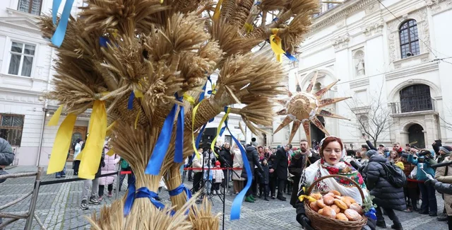 24 грудня, напередодні Різдва, у Львові на одній вулиці провели прощання з полеглими на передовій воїнами та встановлення традиційної різдвяної прикраси — дідуха з колосків у формі тризуба, символу добробуту та єднання. Світлини опублікував міський голова Львова Андрій Садовий.