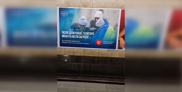 Міжнародна некомерційна організація The HALO Trust, яка проводить гуманітарні розмінування, розмістила на станції Київського метрополітену банер із закликом до внутрішньо переміщених осіб не поспішати повертатися на деокуповані території, бо вони можуть нести загрозу. Українські правозахисники звернули увагу на некоректність формулювання, яке таврує окуповані землі та їхніх жителів як "небезпечних". Першим опублікував фото банера користувач Facebook Роман Федорченко.