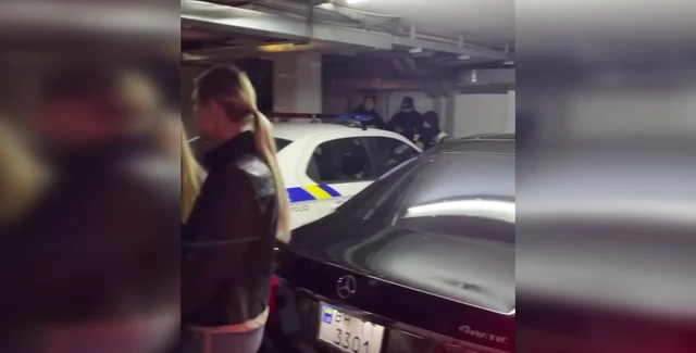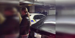 Водій викликав на допомогу адвокатів та інших людей, які намагалися відвернути увагу поліції від нього. Судячи з кадрів, на паркінгу перебуває досить багато небайдужих громадян. Стоїть чорний седан Merсedes в оточенні двох поліцейських машин.