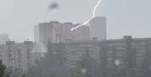 У Києві негода: блискавка влучила прямо в будинок, подекуди випав град (відео)
