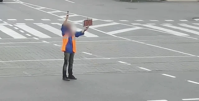 Фото чоловіка, який намагався перекрити рух на перехресті у Вінниці