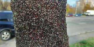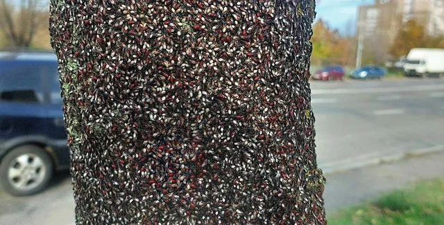 "Гугл пише, що це липовий клоп (Oxycarenus lavaterae). Стовбур липи від землі до крони в них. Схоже на якийсь фільм жахів", — йдеться в описі.
