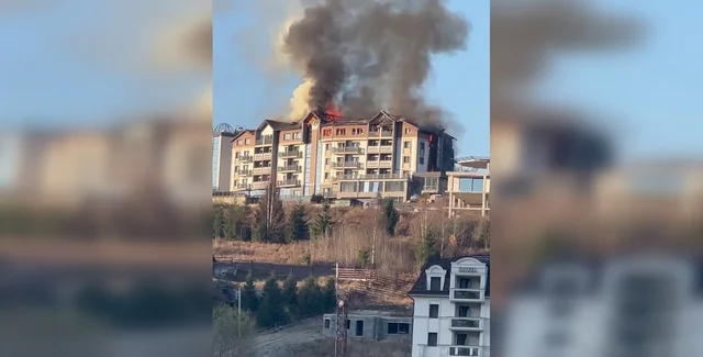 У соцмережах повідомляють, що пожежа на гірськолижному курорті в Івано-Франківській області розпочалась приблизно о 15:24 і полум'я розгорілось дуже швидко.