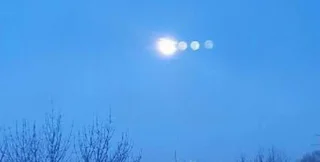 Перші світлини з цим атмосферним явищем почали публікувати місцеві пабліки після 19:00. На фото можна побачити, що поруч з основним джерелом світла, у якому видно контури супутника Землі, за ним також присутні три інші фігури.