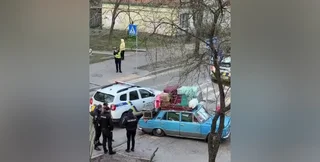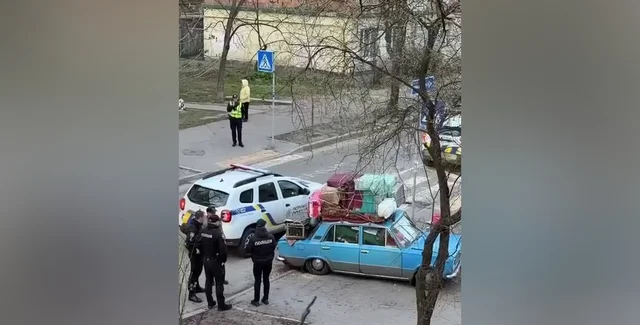 У центрі столиці навантажене стареньке авто не витримало і зламалося. Небайдужий перехожий звернув увагу на розгубленого чоловіка, викликав поліцію, і патрульні допомогли йому.