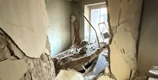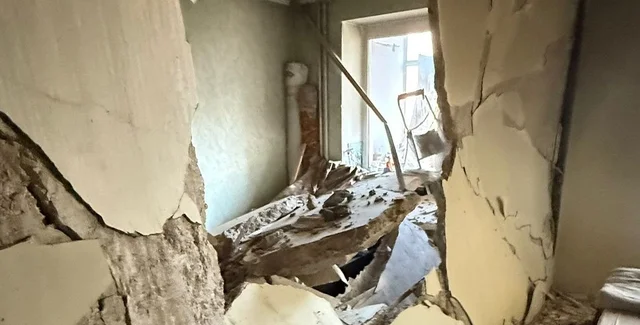Вибух стався на восьмому поверсі. Пошкоджено стіну між кімнатами у квартирі, що видно на фото з місця події.