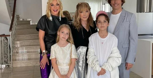 Так, Галкін опублікував рідкісне фото з Аллою Пугачовою та її трьома дітьми — 53-річною Крістіною Орбакайте від першого шлюбу та 11-річними двійнятами — Лізою та Гаррі. На світлині Максим Галкін позує в сірому костюмі, білій футболці та кросівках. Тим часом Алла Борисівна одягла яскраву спідницю в трендовому кольорі металік, чорну блузку та срібні туфлі. Волосся примадонна злегка підібрала. Поряд з нею позує старша донька Крістіна, яка одягнена яскраві фіолетові штани в паєтку та чорну блузу.