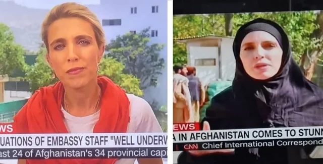 Ще вчора репортажі з Афганістану Клариса Ворд вела в звичайному одязі з відкритим обличчям, а сьогодні, 16 серпня, вона змінила одяг.