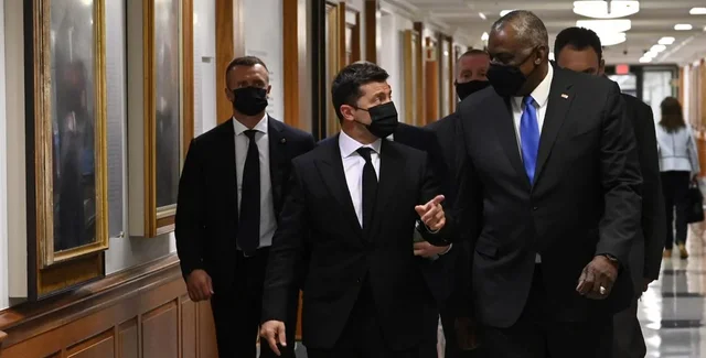Під час візиту президента України Володимира Зеленського в США, глава Пентагону пообіцяв приїхати з візитом в Україну. За словами українського президента, під час перебування Остіна в Україні очікується розробка угоди зі стратегічних основ оборонного партнерства, яка була підписана в США. Зокрема, угода передбачає розробку бази для створення загальних систем озброєння.