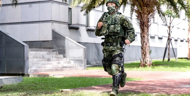 "Екзоскелет нижньої частини тіла масою 10 кг дозволяє солдату рухатися зі швидкістю 6 км/год", — сказав Джен Куо-куанг, керівник проекту та член провідного військового науково-дослідного інституту, Національного інституту науки Чжун-Шаня.