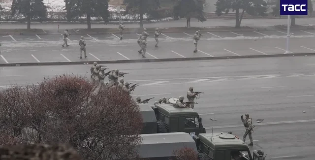 Вночі у найбільшому місті Казахстану пройшли сутички силовиків із революціонерами. Під час сутичок, за даними МВС, "десятки нападників були ліквідовані" під час спроби захоплення будівлі поліції. Вже вранці в центрі Алмати сотні військових оточили площу Республіки, де були революціонери. Повідомляється, що військові прибутки на БТР і вантажівках. Для цього було задіяно майже 300 військових.