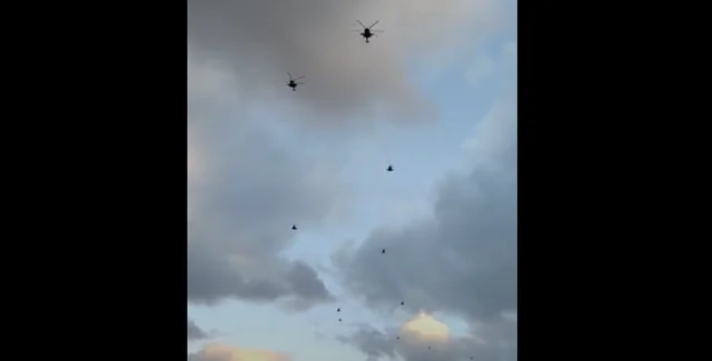 На іншому відео, у Нижньогородській області зафіксовано кілька гуртів із вертольотами. Автор ролика ставить питання: "Куди ж вони летять?".