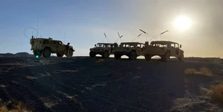 Армійські машини під час навчань у Національному навчальному центрі, Каліфорнія